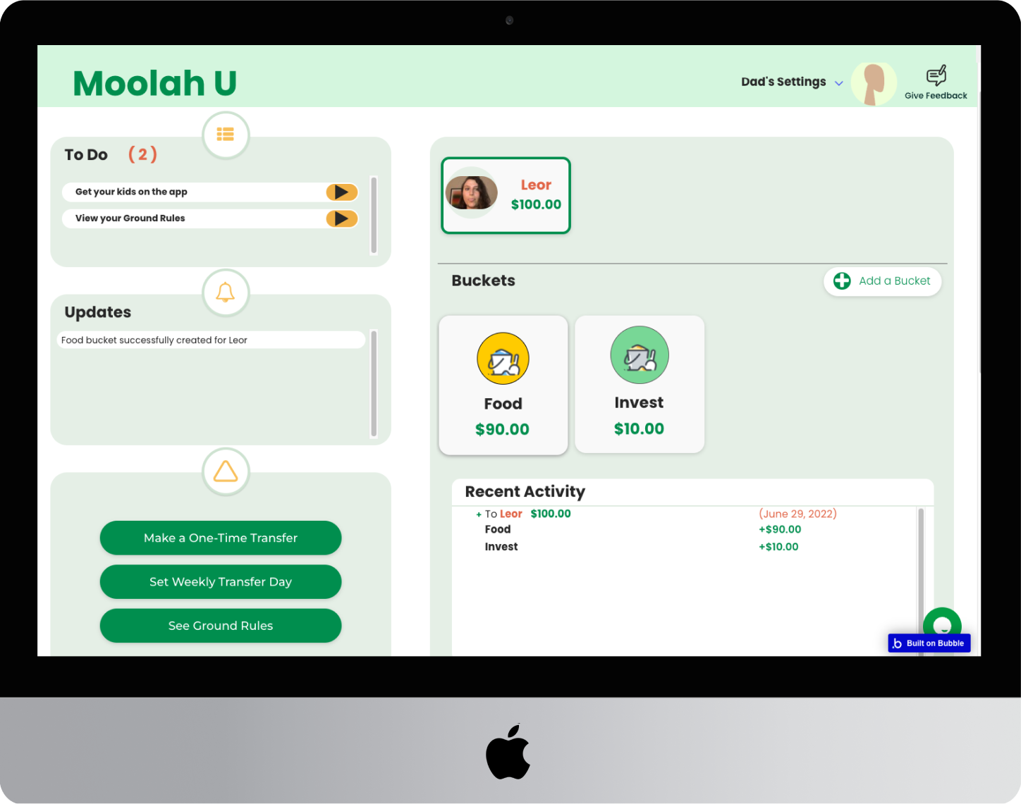 We proposed a full redesign, better guiding parents through the app to teach their children healthy money habits.